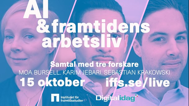 Hur kommer artificiell intelligens, AI, att påverka framtidens arbetsliv? Lyssna på ett samtal mellan tre forskare: en ekonom, en filosof, och en sociolog, när de pratar om hur AI:s intåg i arbetslivet kommer att se ut. Vilka jobb och uppgifter är det som kommer att automatiseras? Vad är det som begränsar automatiseringen och hur blir arbetslivet tillsammans med de nya digitala kollegorna?