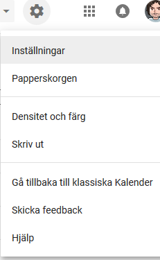 - Klicka på kugghjulet uppe till höger och välj inställningar:
