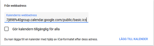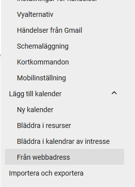 - Tillhöger klickar du på "Lägg till kalender" sedan "Från webbadress":